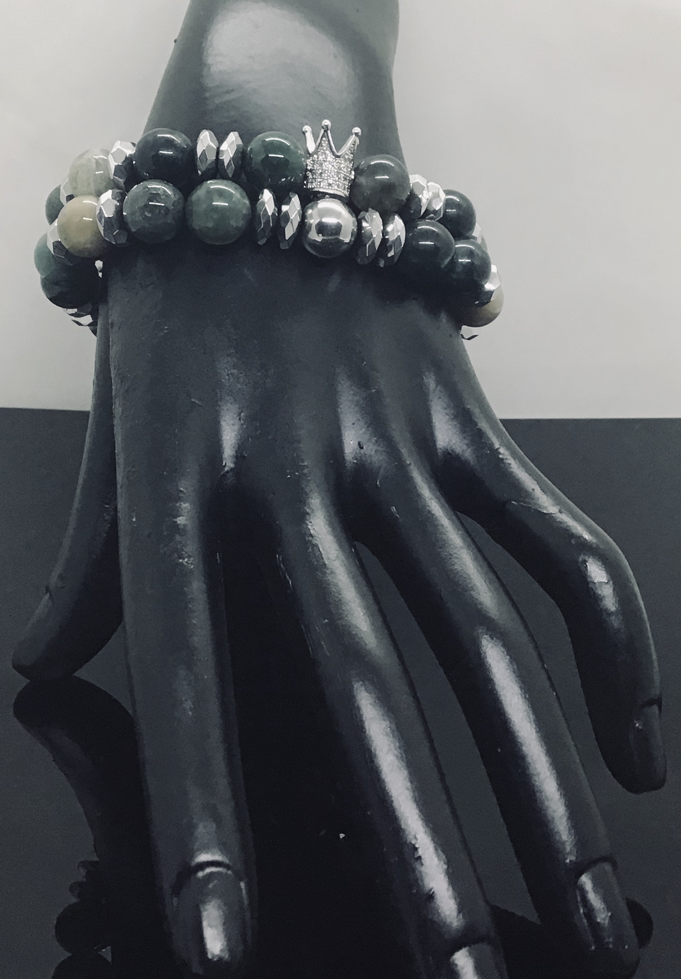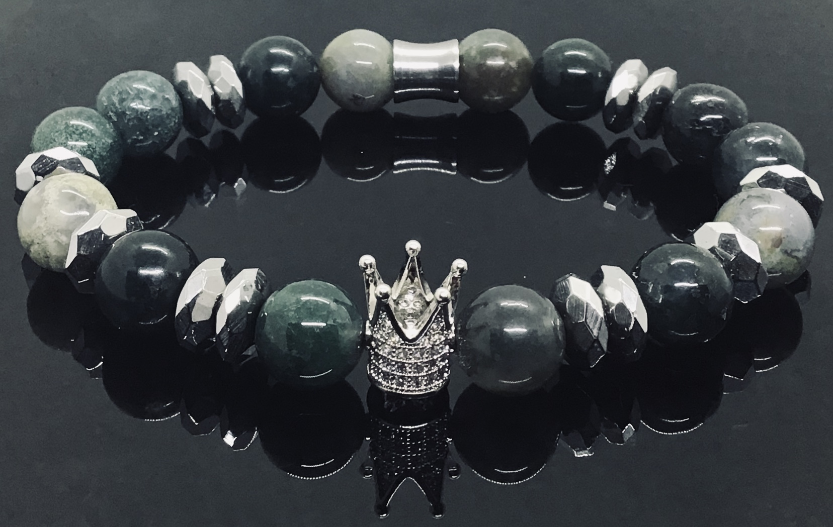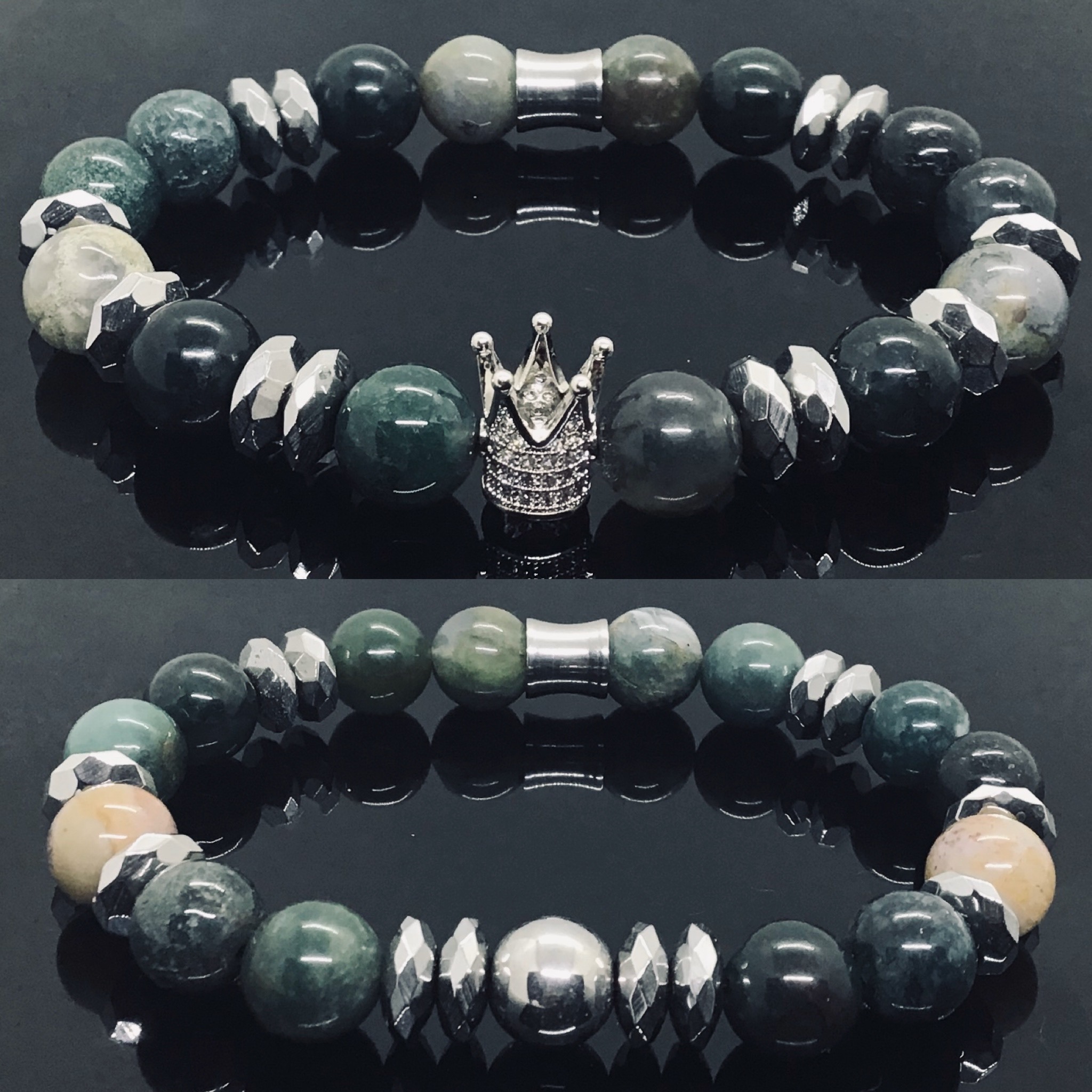 10mm Jasper Gemstones, 10mm Silver Hematite w/ Micro paved Cubic Zirconia Crown. Since these are natural stones, there will be some natural variations in stone size, pattern and color. Heavy duty, Strong, Stretchy, Resilient, & Flexible, Lead & Nickel free, All Gemstones are natural & ethically sourced.