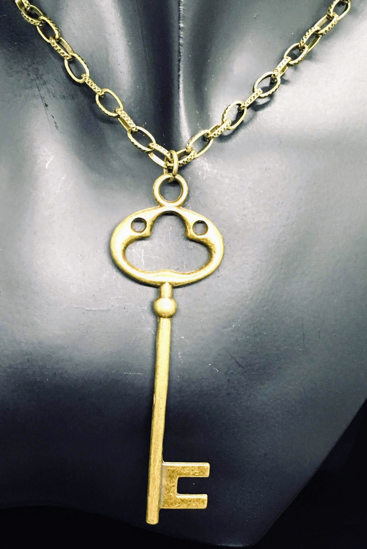 Large a Brass Key 3inches long, on a 20inch Brass Chain, Nickel and lead free.