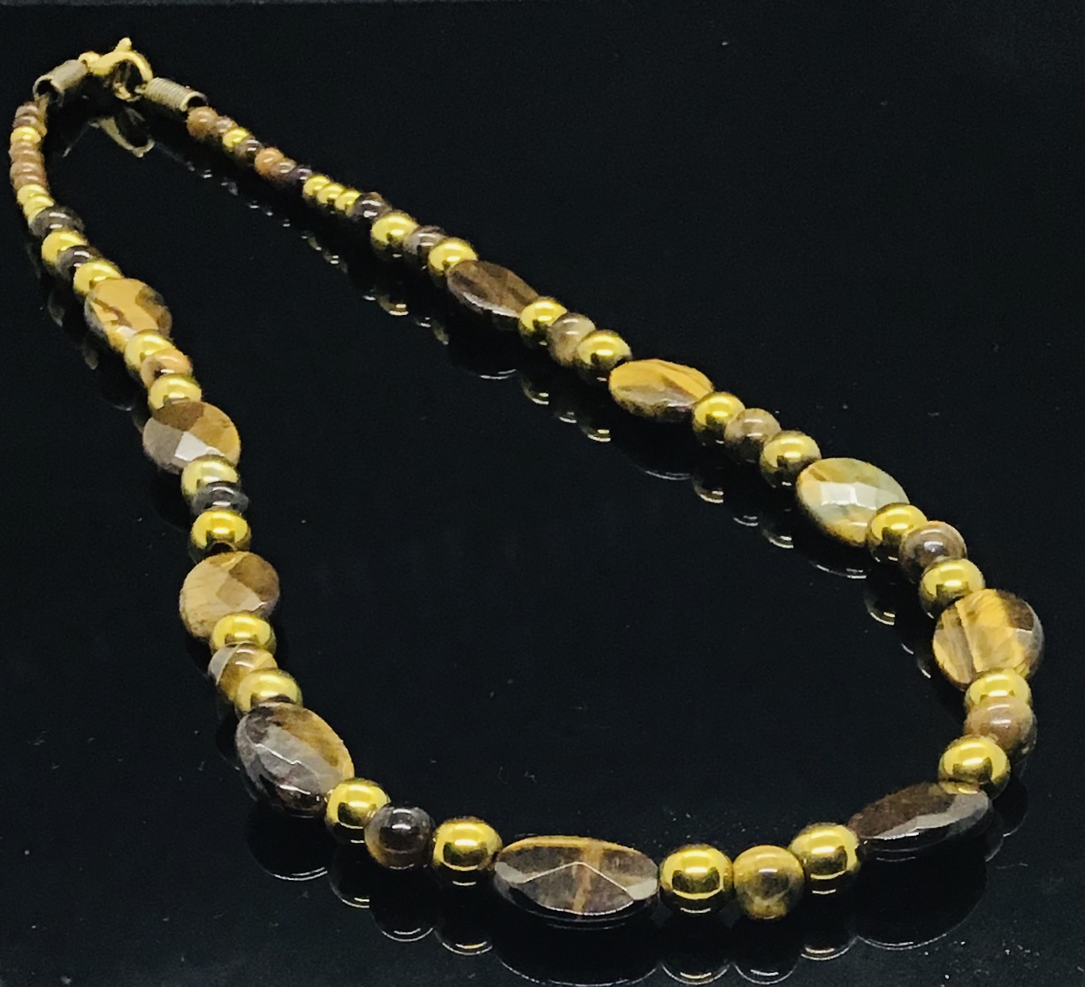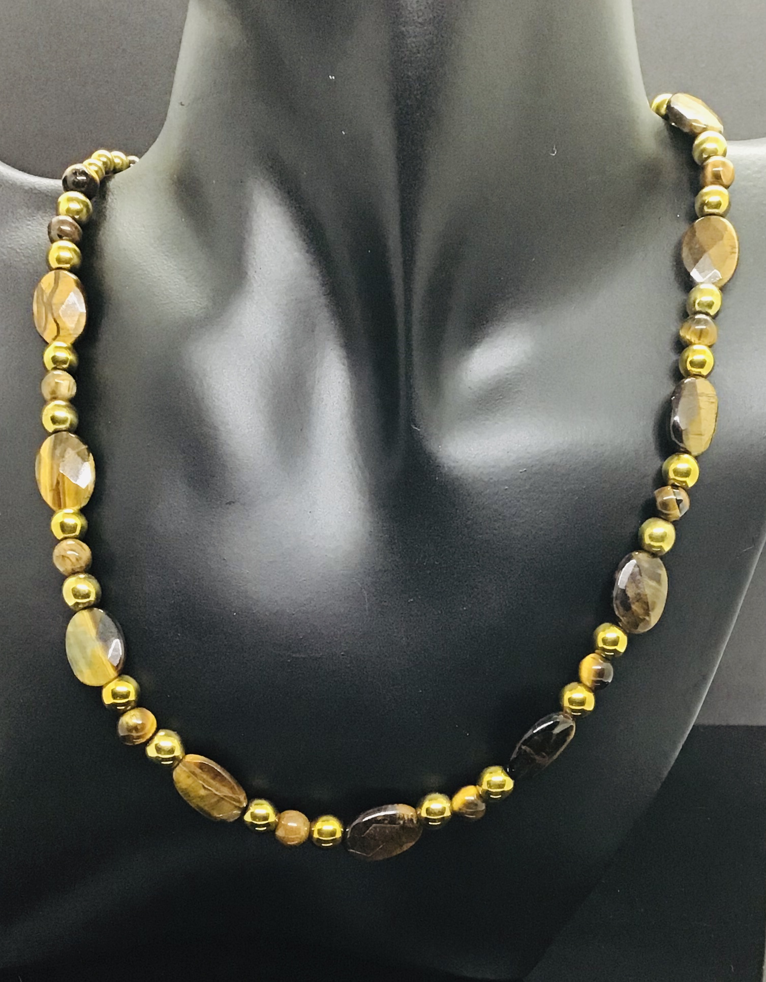 Natural Tiger Eye & Gold Hematite Gemstones, 17 inches necklace, Lead & Nickel free, All Gemstones are natural & ethically sourced.