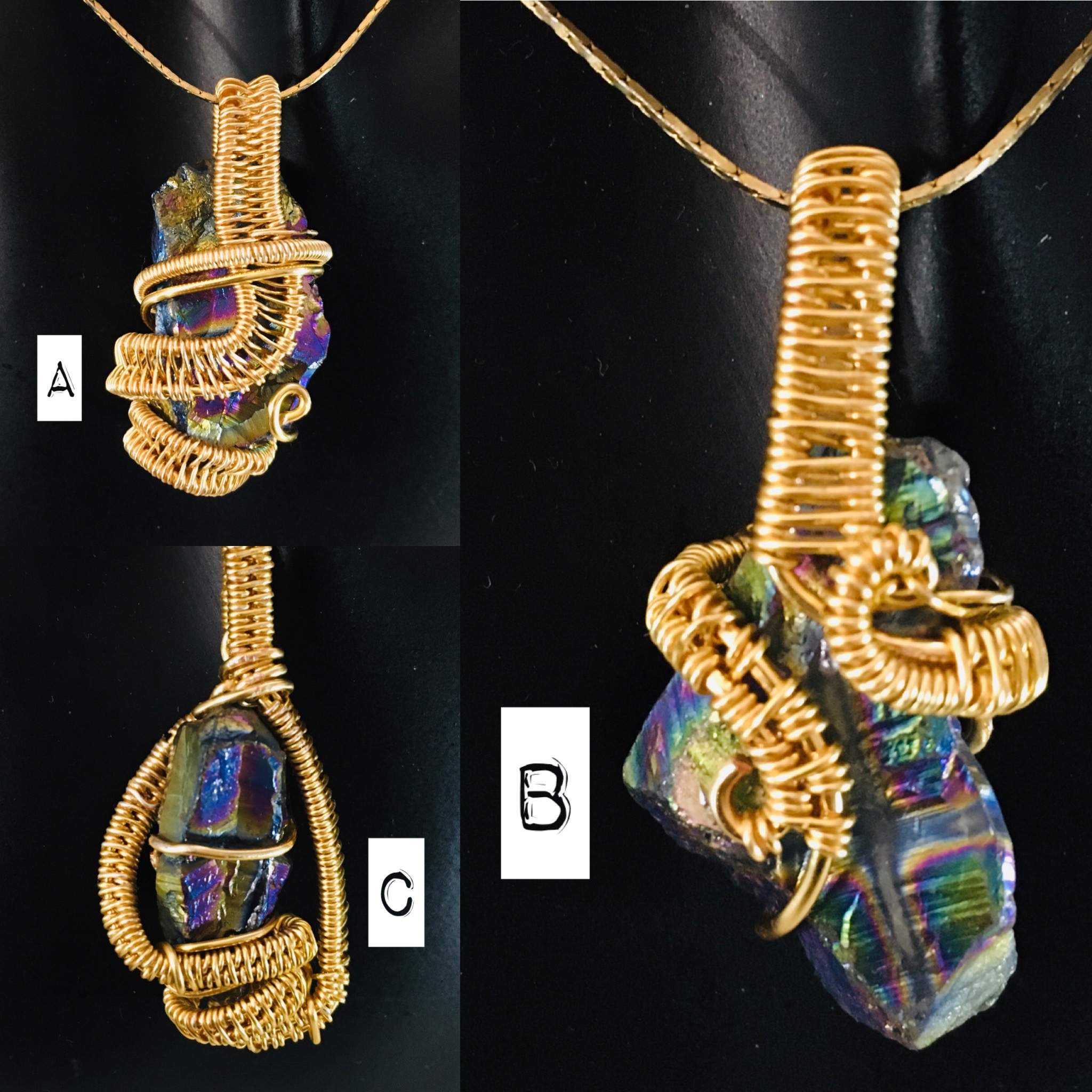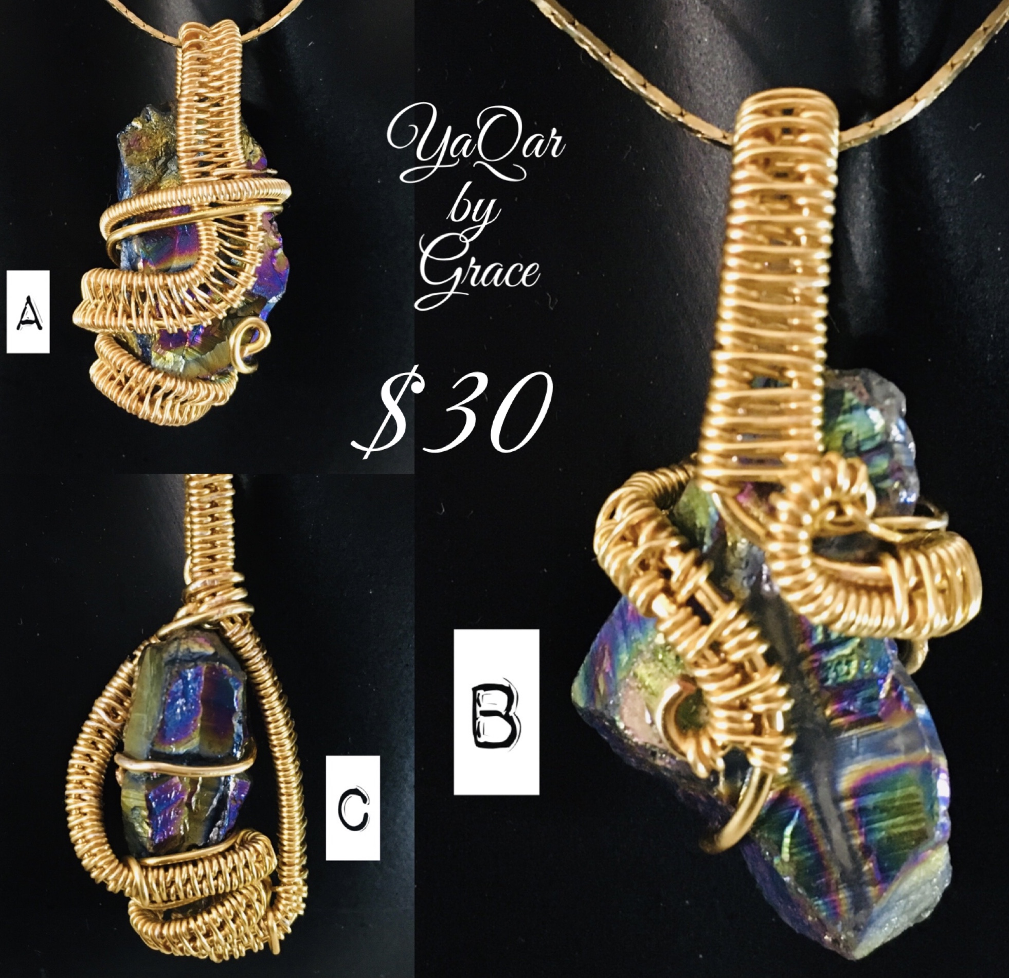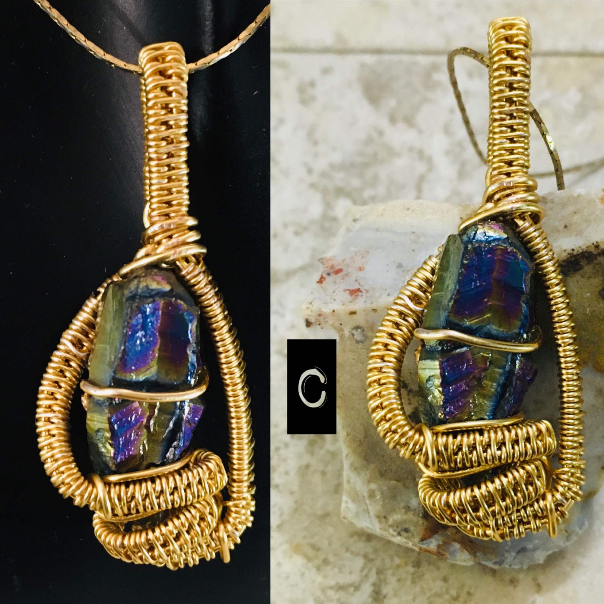 NATURAL; Raw Rainbow ? Hematite HANDMADE wrapped and weaved in TARNISH RESISTANT Gold. HYPOALLERGENIC!!! Comes on a COMPLIMENTARY HYPOALLERGENIC CHAIN!!