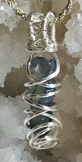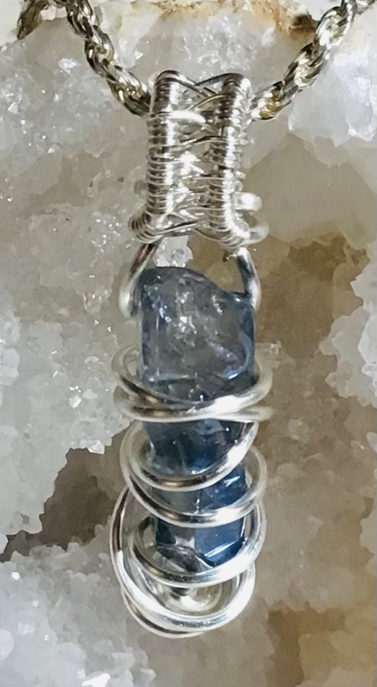 Handmade, Beautiful RAW Blue Topaz wrapped and weaved in TARNISH RESISTANT Silver!! HYPOALLERGENIC!!! Charm 1 3/4 inches (NOT THE CHAIN IN THE PHOTOS)