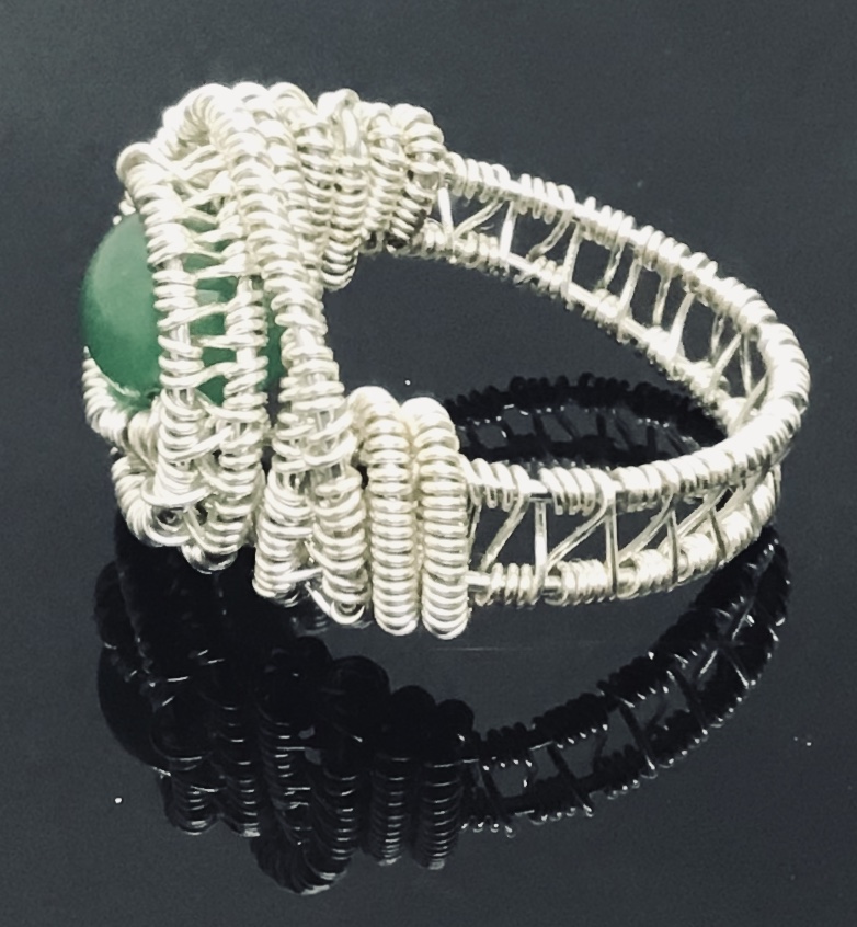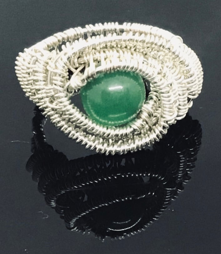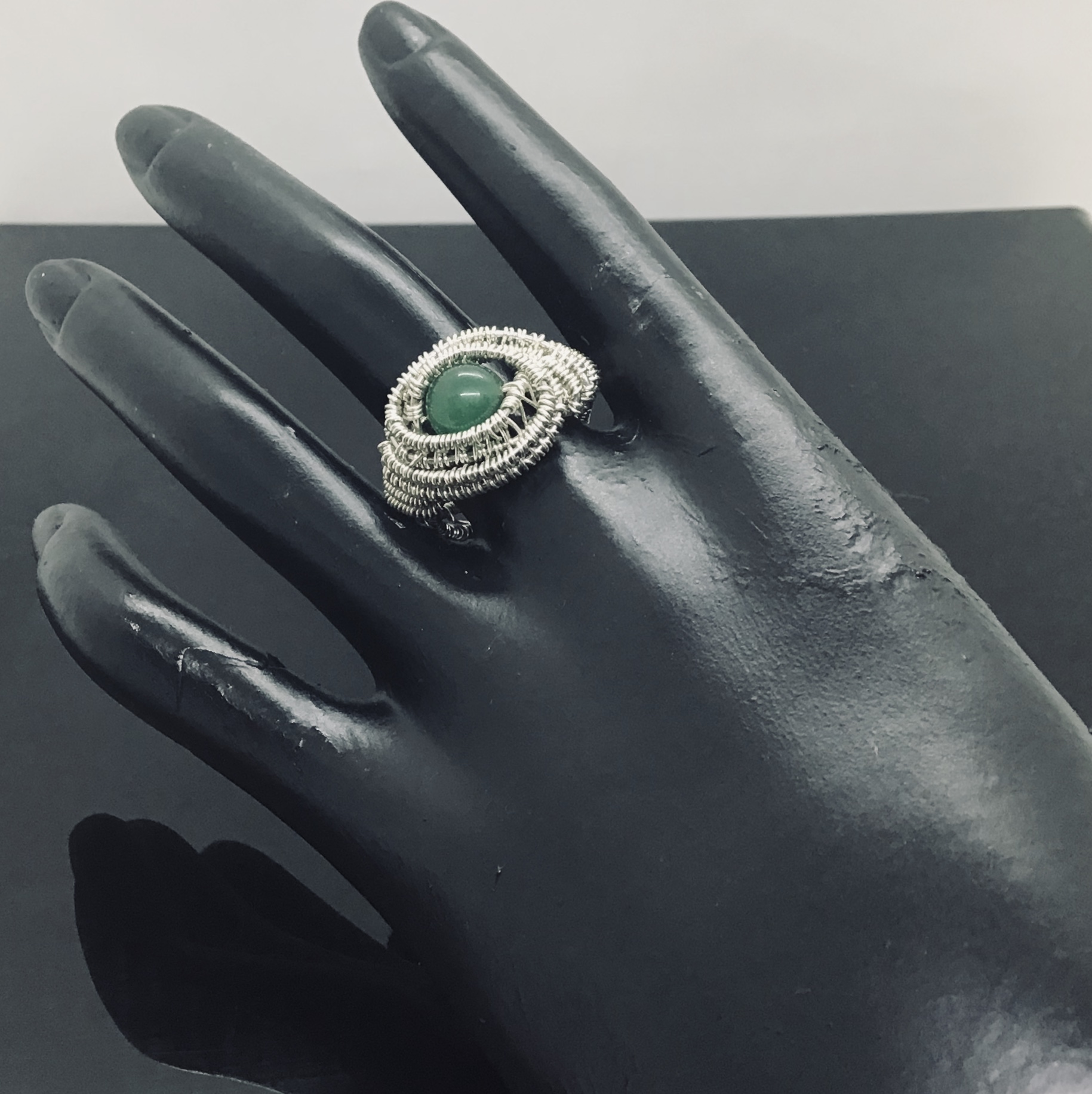 Handmade Green Jade Ring, Wrapped and Weaved with 925 Sterling Silver. All Gemstones are natural & ethically sourced.