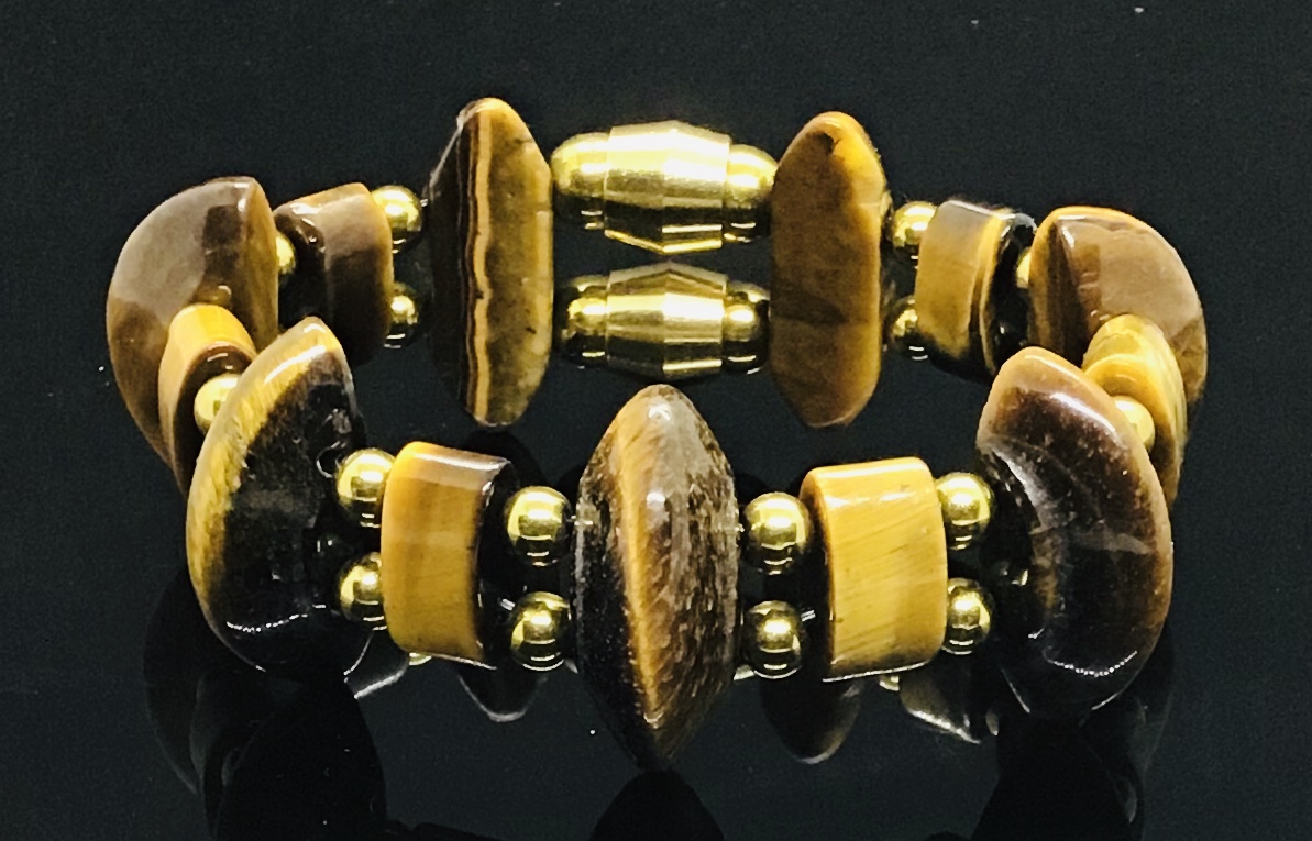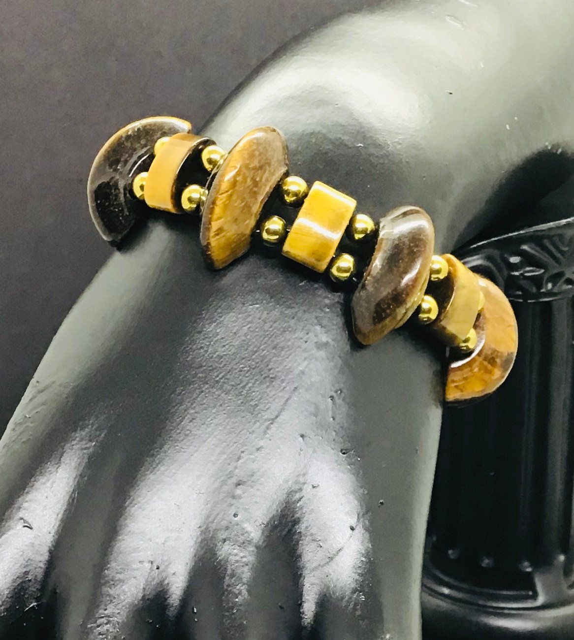 Handmade STUNNING Tiger Eye Gemstone Bracelet 44mm x 6mm, 6mm Gold Hematite Gemstone Rounds. Heavy duty, Strong, Stretchy, Resilient, & Flexible, Lead & Nickel free, All Gemstones are natural & ethically sourced.