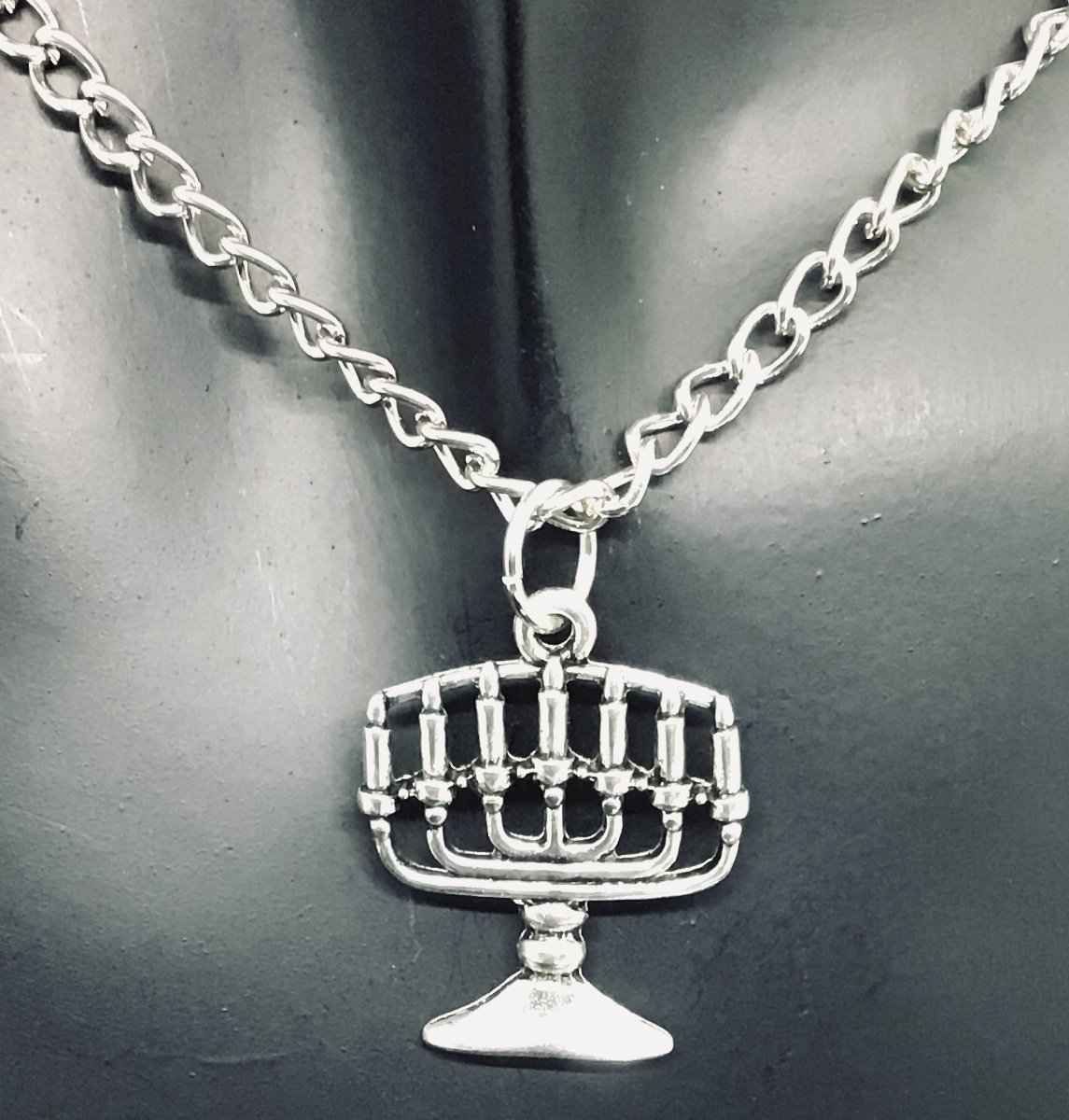 NECKLACE-Stainless Steel Menorah 1in x 3/4in, Chains vary in length, HYPOALLERGENIC