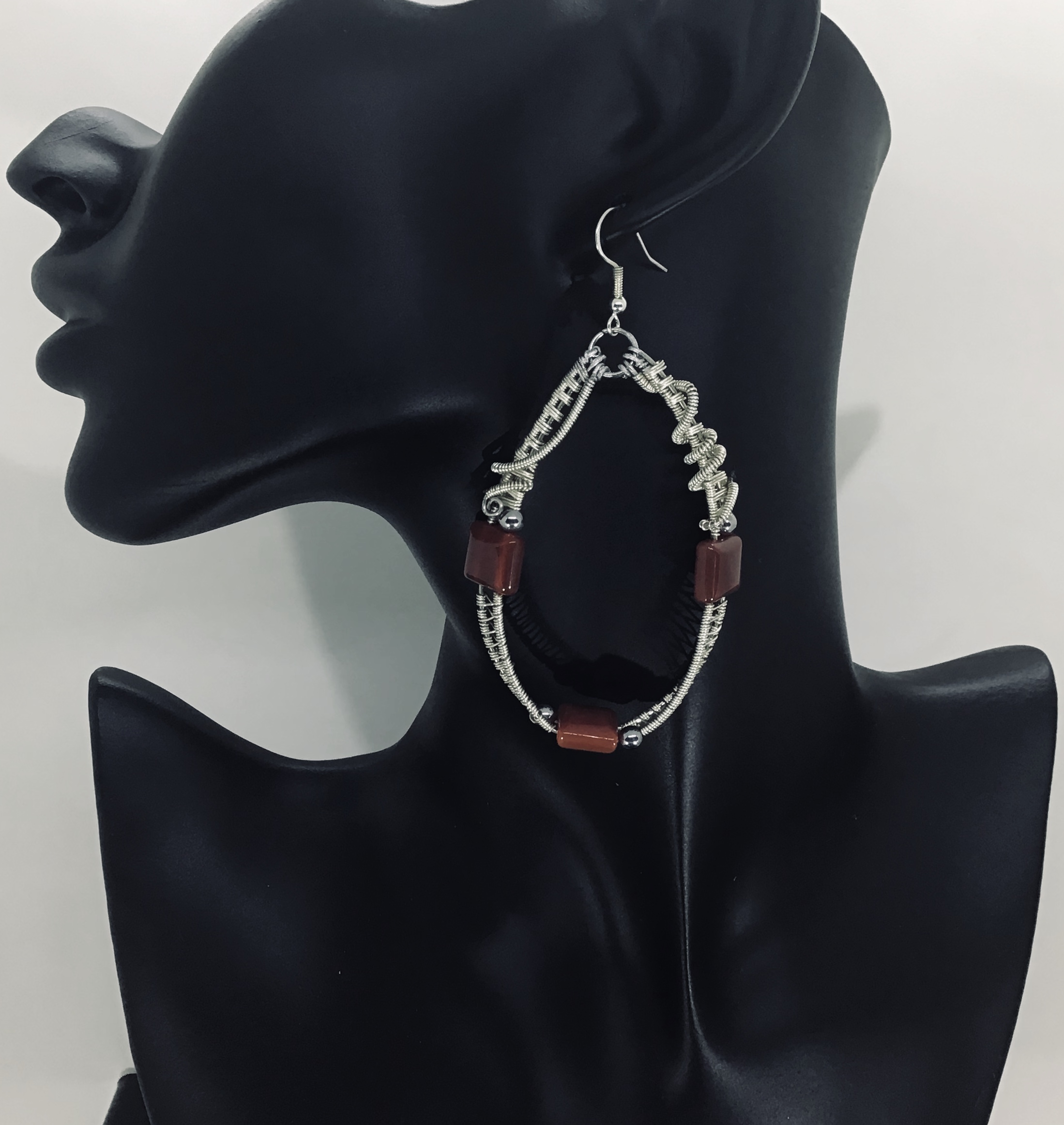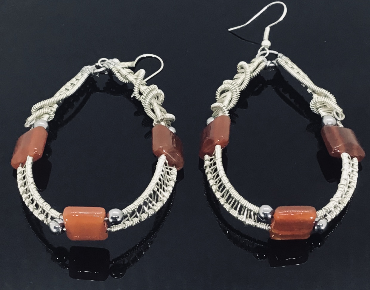 Handmade LARGE 2 1/2 x 1 1/2inch Teardrop Carnelian Gemstones Earrings, square 10mm Carnelian, wrapped & Weaved w/925 Sterling Silver wire, All Gemstones are natural & ethically sourced.