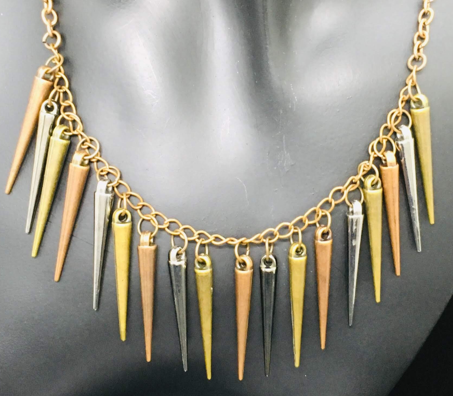 Copper,Brass, & Silver Spikes 1 1/16in, necklace 18 1/2inch, Light weight necklace, Lead & Nickel free.