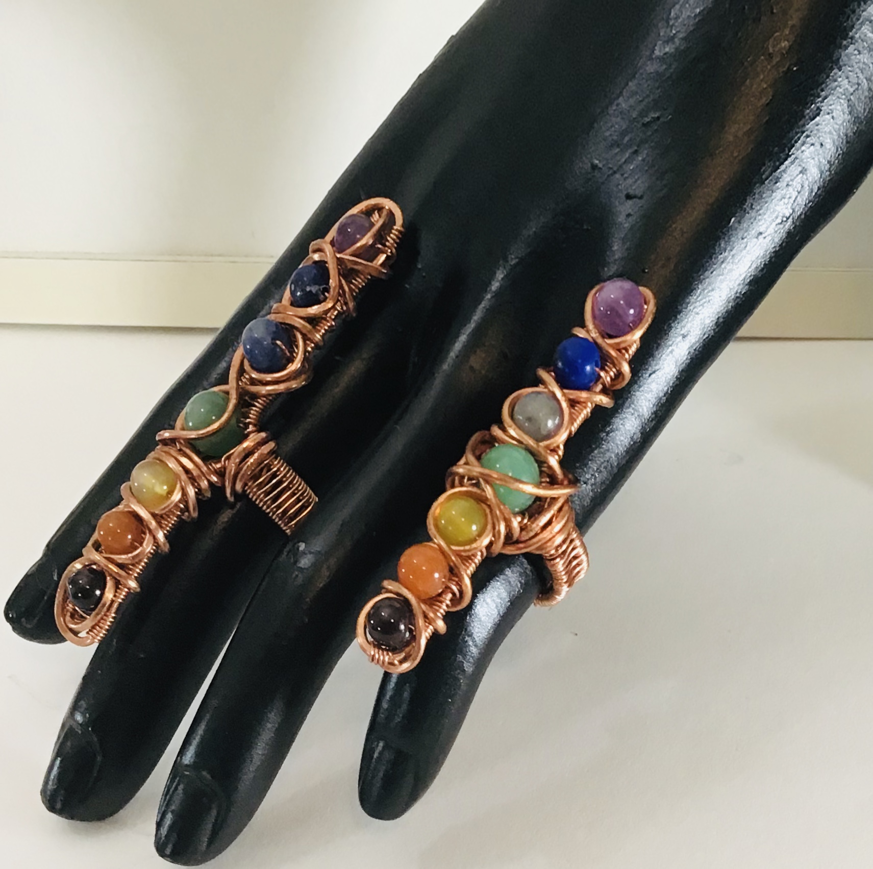 HANDMADE!!! Wrapped and Weaved with pure copper, hammered for extra shine and sturdiness. Amethyst, Lapis Lazuli, Striped Agate, Green Aventurine, Citrine, Carnelian, & Garnet.