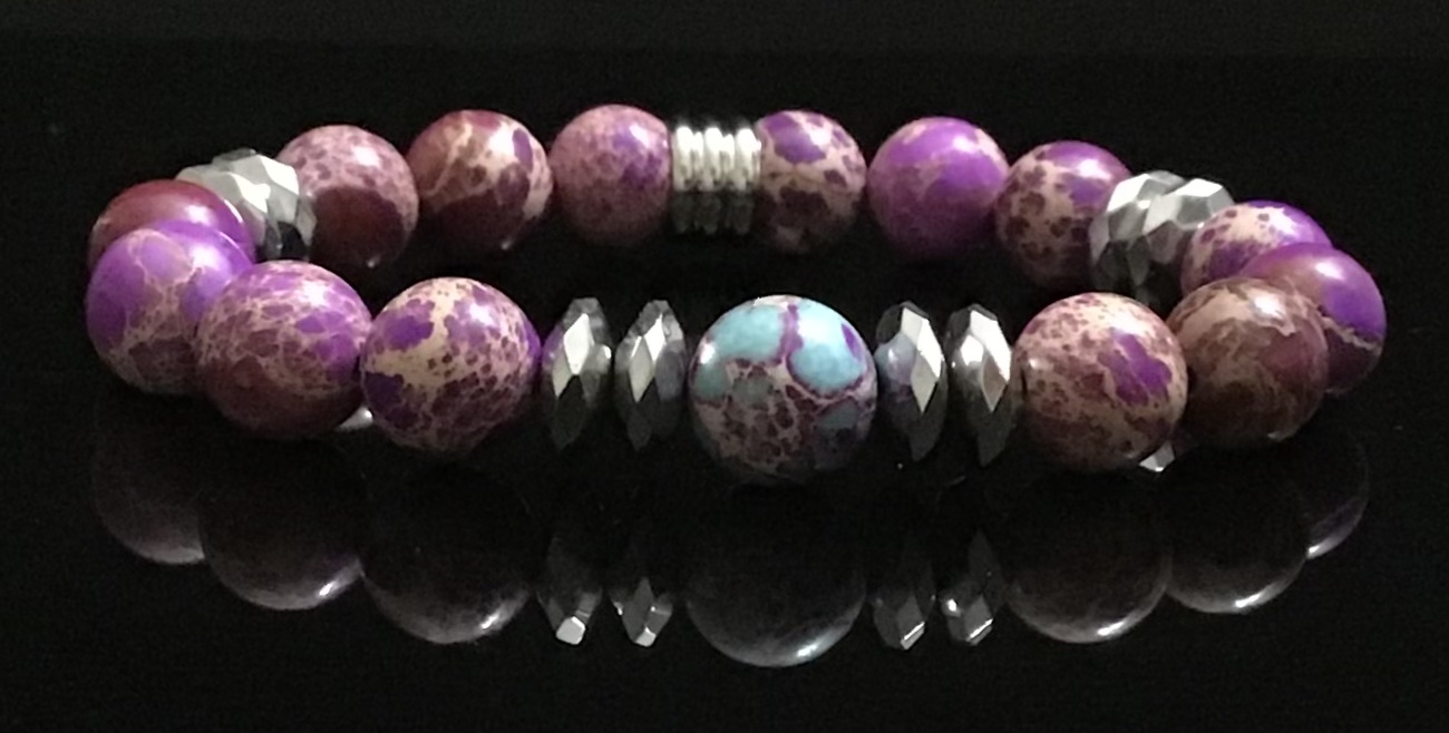 Sea Sediment Jasper; embellished w/Silver Hematite