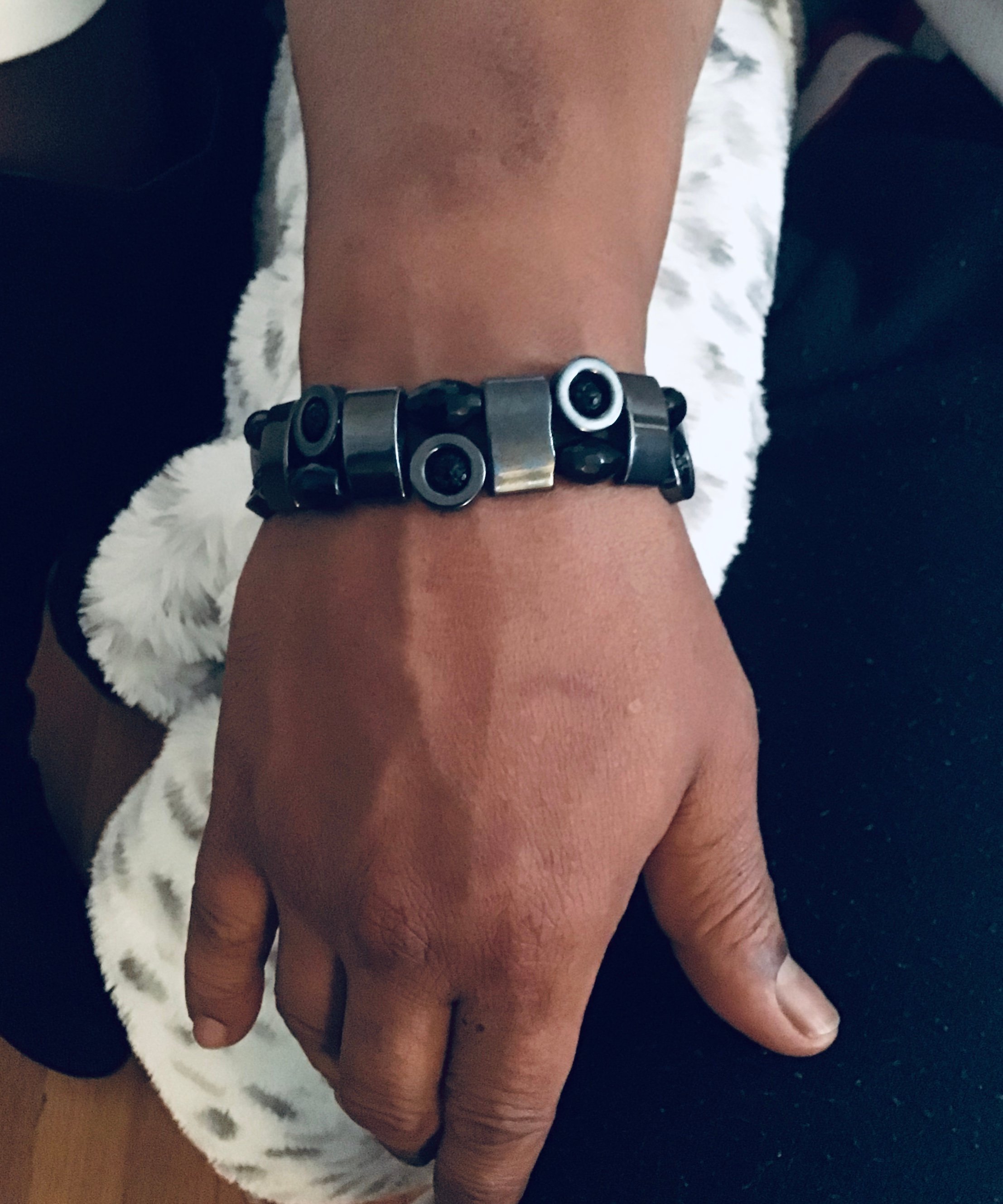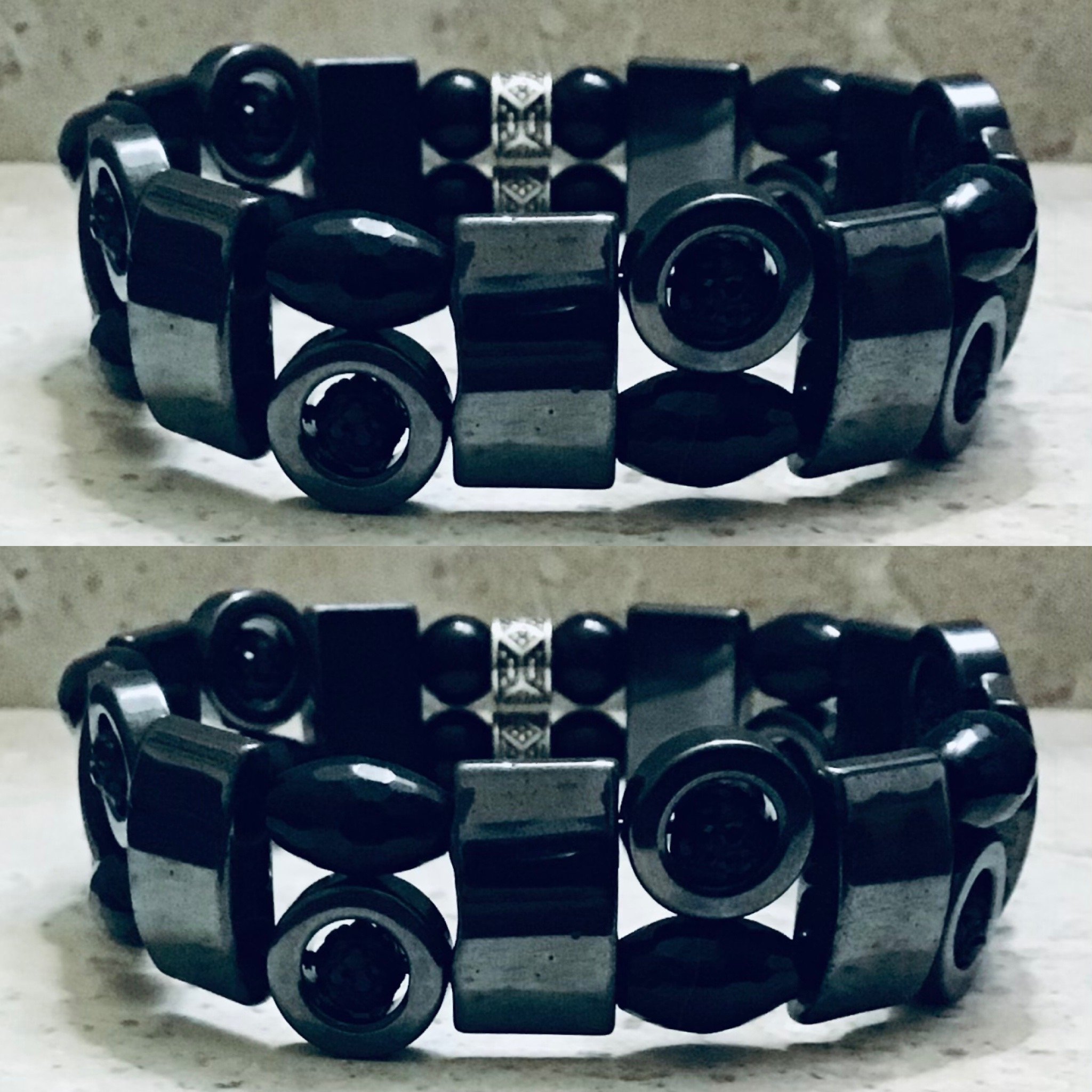 Onyx and Hematite gemstone bracelet; Heavy duty, Strong, Stretchy, Resilient, & Flexible, Lead & Nickel free, All Gemstones are natural & ethically sourced.