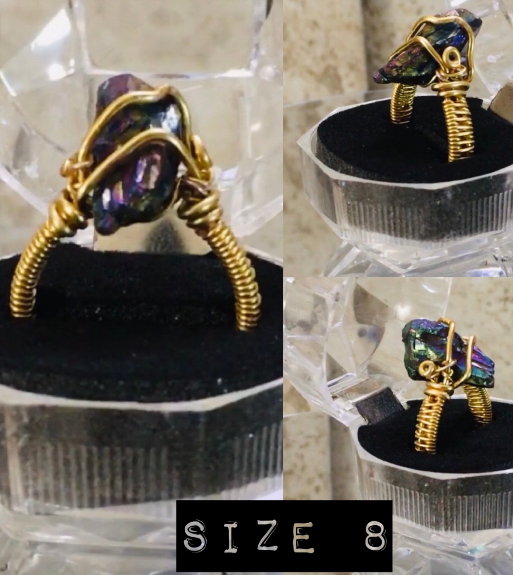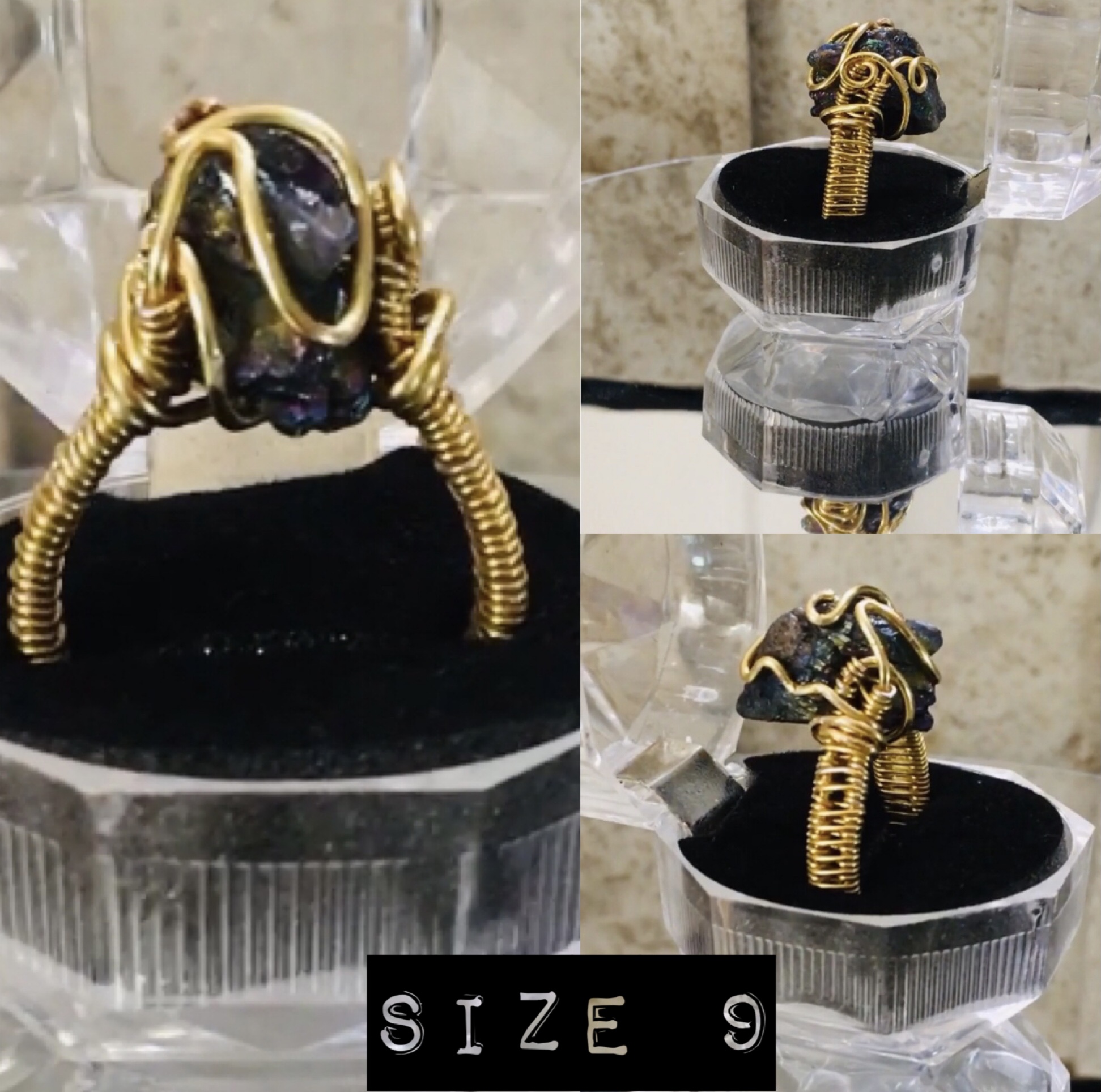 NATURAL; Raw Rainbow ? Hematite HANDMADE wrapped and weaved in TARNISH RESISTANT Gold. HYPOALLERGENIC!!! Comes on a COMPLIMENTARY HYPOALLERGENIC CHAIN!!